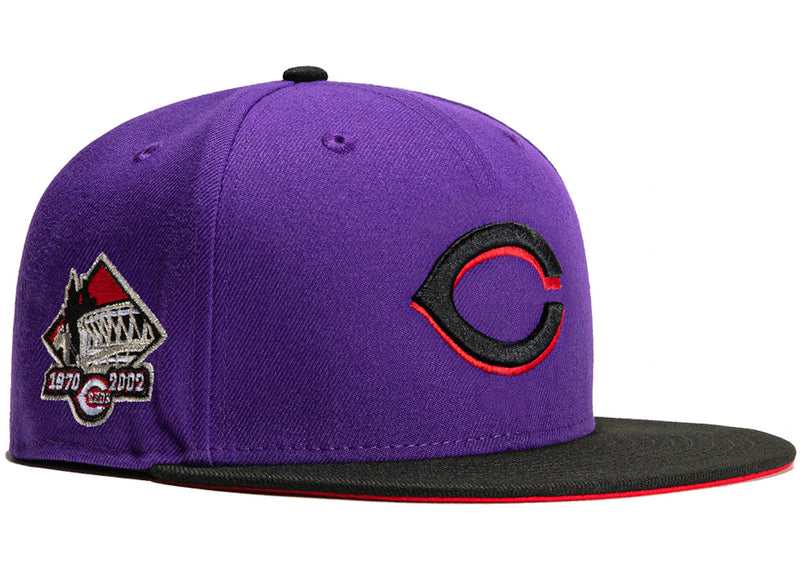 New Era Cincinnati Reds T-Dot Riverfront Stadium Patch Hat Club Exclusive 59Fifty Fitted Hat Purple/Black