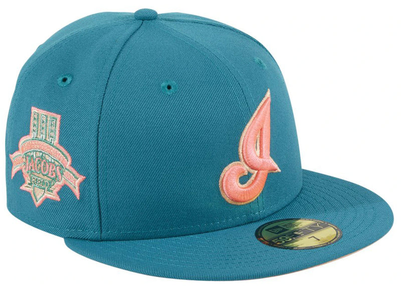 The New Era Cleveland Indians Badlands Jacobs Field Patch I Hat Club Exclusive 59Fifty Fitted Hat Teal is now available at Side Kicks!