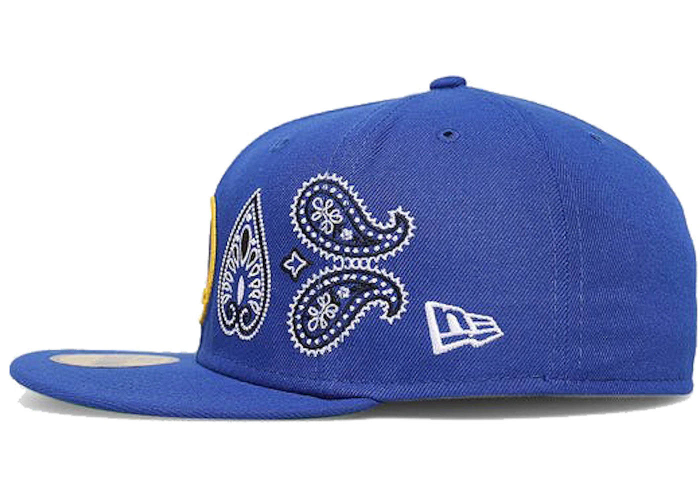 The New Era Golden State Warriors Paisley 59Fifty Fitted Hat Medium Blue is now available at Side Kicks!
