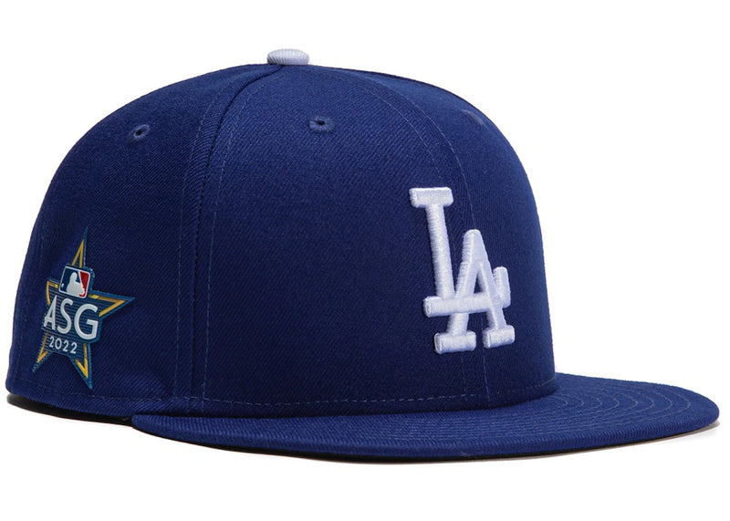 The New Era Los Angeles Dodgers 2022 All Star Game Patch Game Hat Club Exclusive 59Fifty Fitted Hat Royal is now available at Side Kicks!...