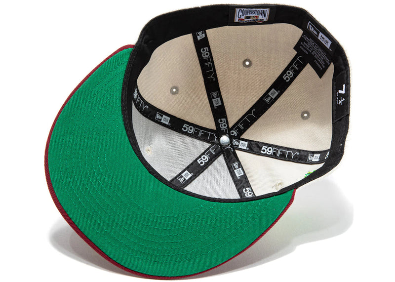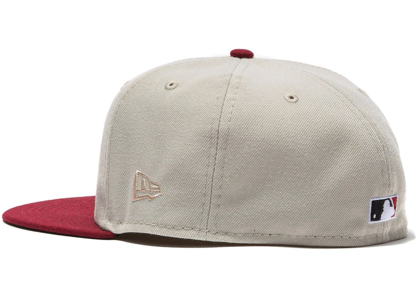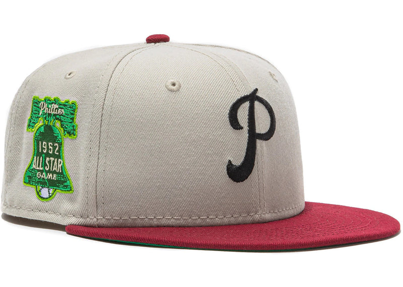 The New Era Philadelphia Phillies Beer Pack 1952 All Star Game Patch Hat Club Exclusive 59Fifty Fitted Hat Stone/Cardinal is now available at Side Kicks!