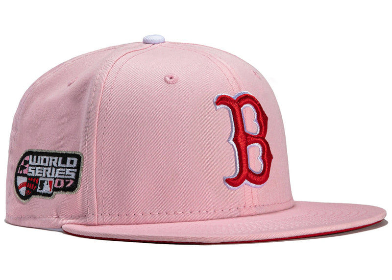 The New Era x Hat Club Boston Red Sox 2007 World Series Patch Strawberry Jam 59Fifty Fitted Hat Pink is now available at Side Kicks!