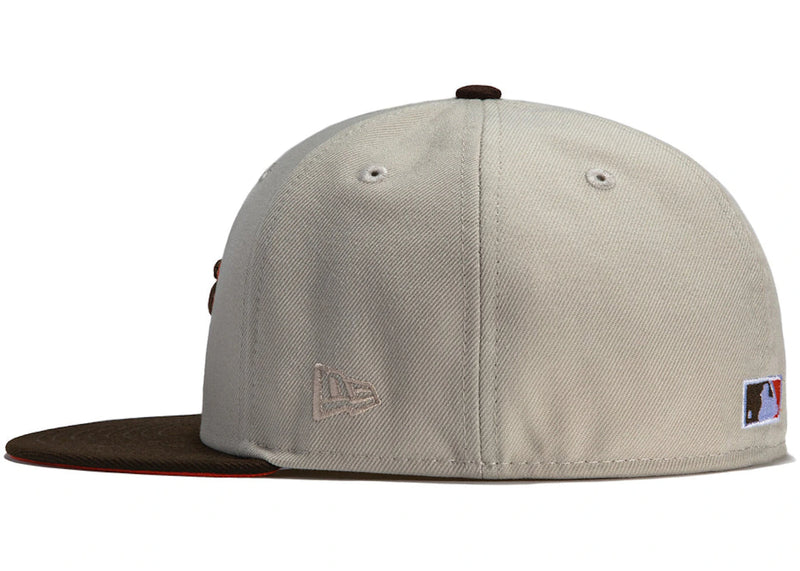 The New Era x Hat Club Exclusive Burger Pack Oakland Athletics 40th Anniversary Patch 59Fifty Fitted Hat Stone/Brown is now available at Side Kicks!