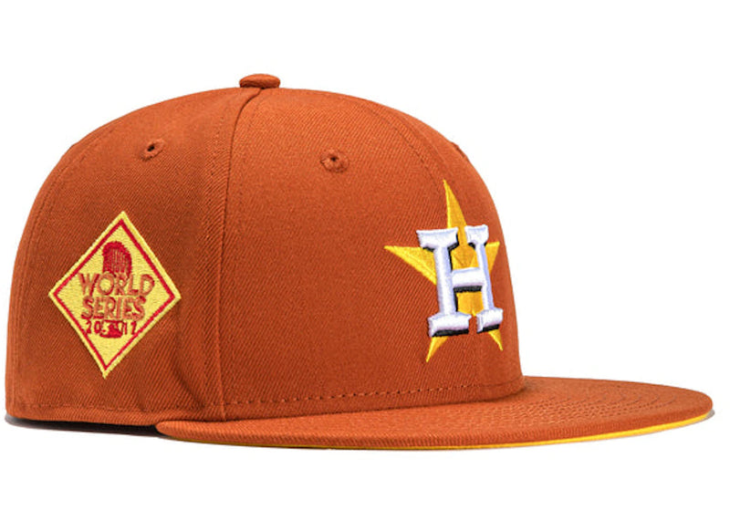 The New Era x Hat Club Exclusive Cereal Pack Bonus Flavors Houston Astros 2017 World Series Patch 59Fifty Fitted Hat Burnt Orange/Gold is now available at Side Kicks!
