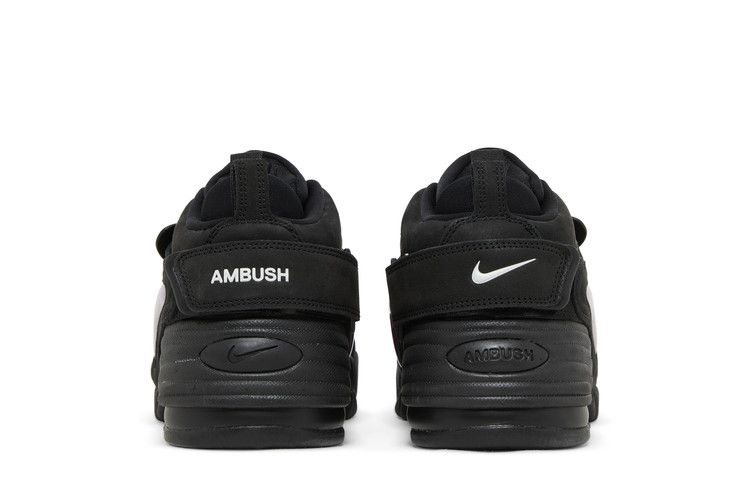 The Nike Air Adjust Force AMBUSH Black features a 1990s crosstrainer design with black Durabuck construction. It includes mini-Swoosh toe emblems, a dual-strap harness for forefoot and heel security, and...