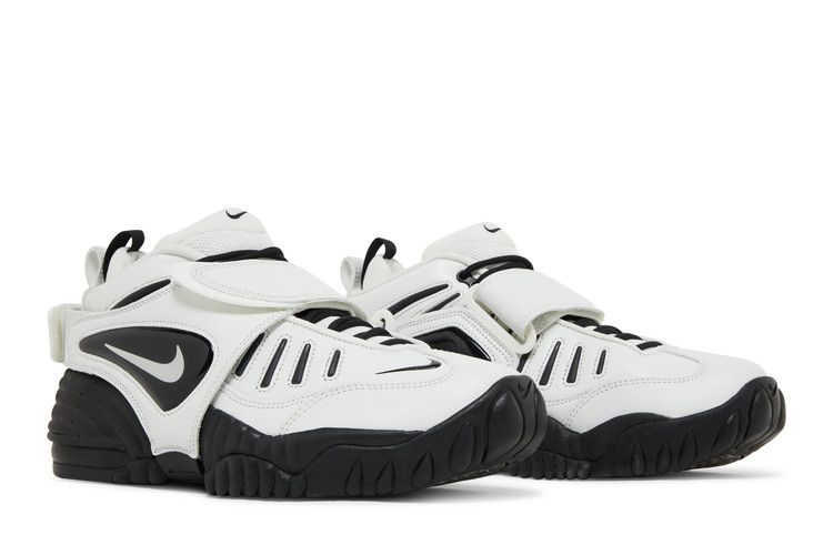 The Nike Air Adjust Force AMBUSH White features a 1990s crosstrainer design with a white Durabuck upper and mini-Swoosh toe emblems. A dual-strap harness secures the forefoot and heel, while...