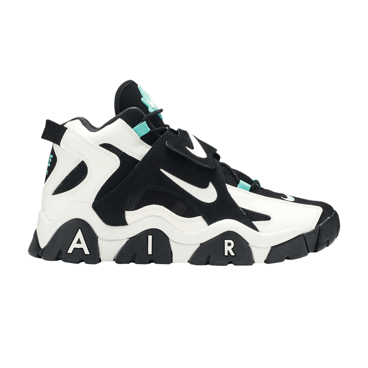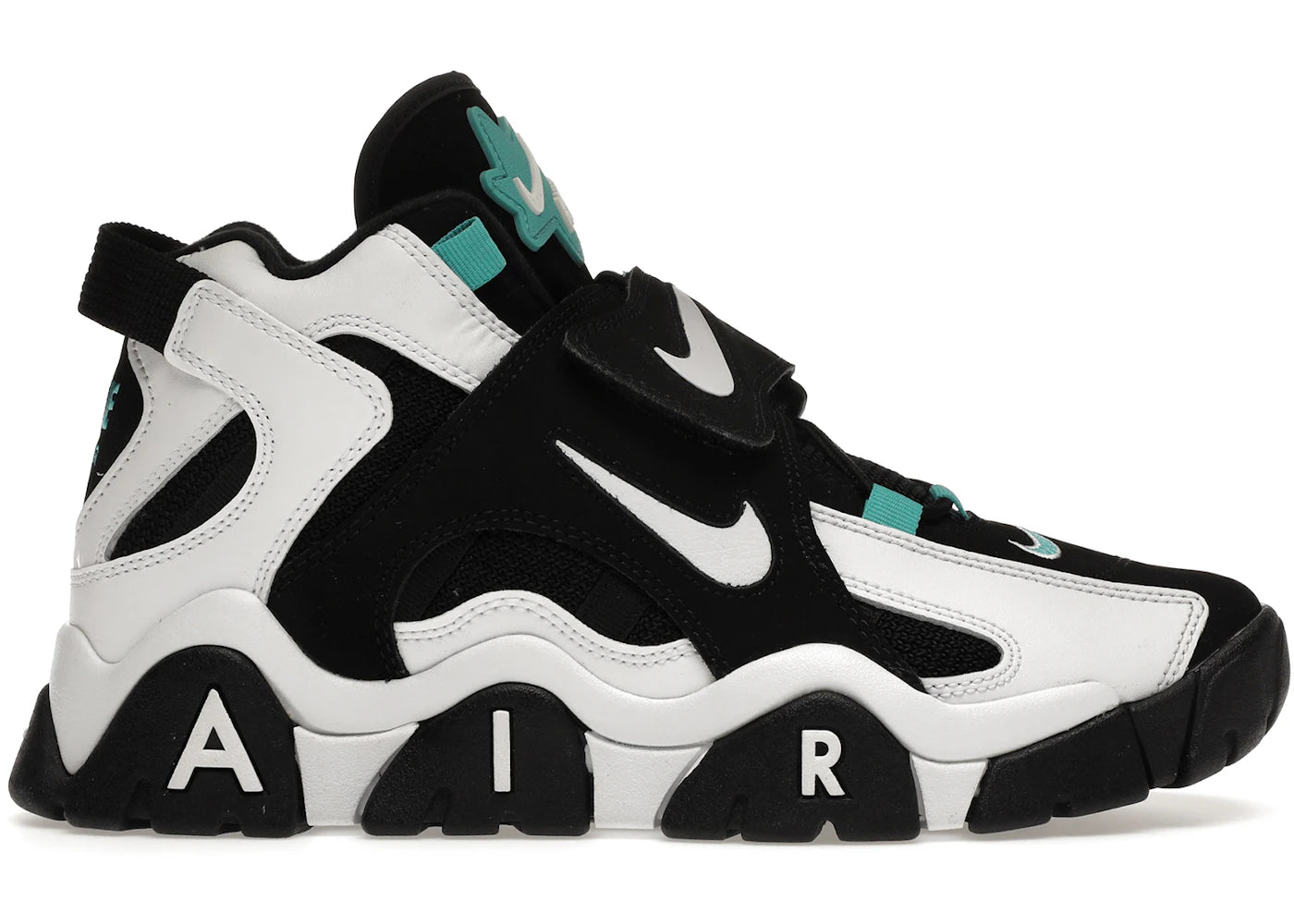 The Nike Air Barrage Mid Black White Cabana combines leather and synthetic materials for durability and support. It features a black and white colorway with cabana blue accents, Nike Air...