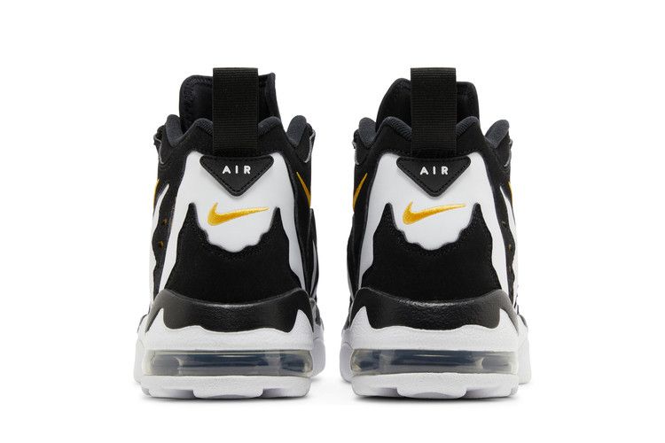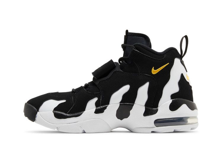 The Nike Air DT Max '96 Falcons features a black nubuck upper with Team Anthracite, Fire Red, and white accents, inspired by the Atlanta Falcons' team colors. The heel showcases...