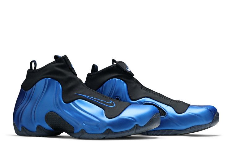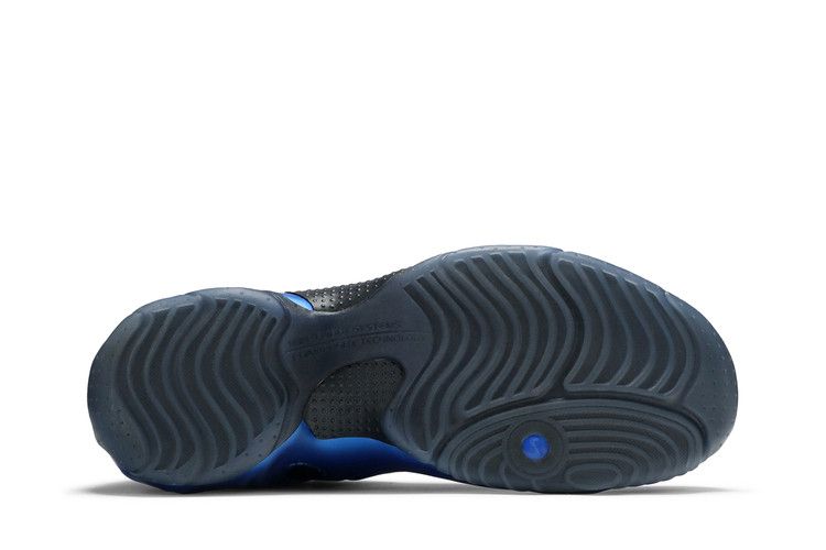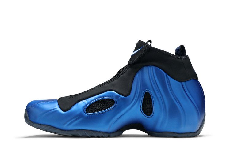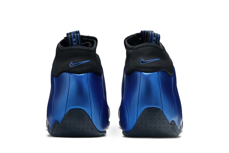 The Nike Air Flightposite One Dark Neon Royal features a royal blue foamposite upper with a black leather overlay. It includes an icy blue outsole, matching the original Nike Foamposite...