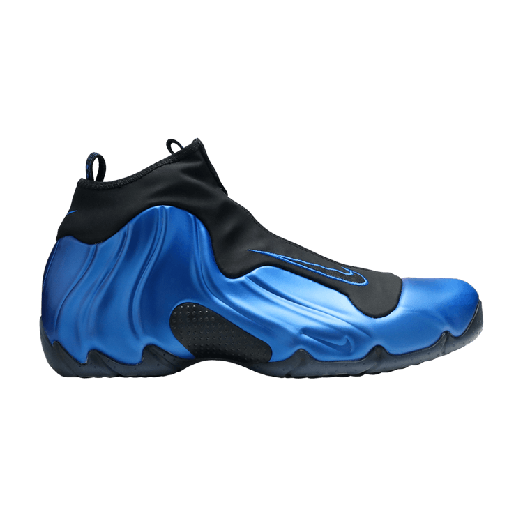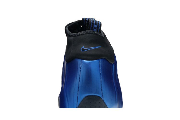 The Nike Air Flightposite One Dark Neon Royal features a royal blue foamposite upper with a black leather overlay. It includes an icy blue outsole, matching the original Nike Foamposite...