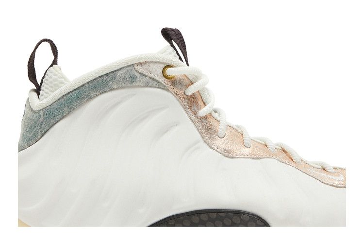 The Nike Air Foamposite One Marble W features a summit white upper with Oil Grey accents on the eyelets and heel. It includes black pull tabs at the heel and...