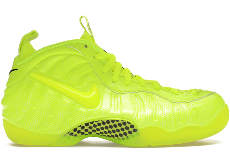 The Nike Air Foamposite Pro Volt 2021 features a molded Foamposite upper in a Volt colorway with black accents and wave-like grooves. It includes 3D Swooshes on the sides, a...