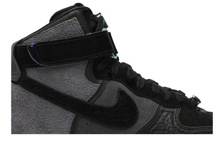 The Nike Air Force 1 High A Ma Maniére features a suede upper with tumbled leather overlays and dark grey accents. It includes a suede-wrapped midsole, grey outsole, and black...
