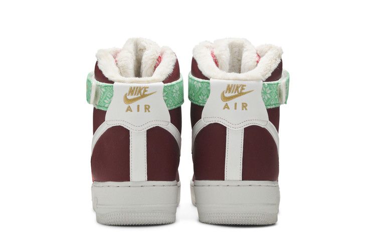 The Nike Air Force 1 High Nordic Christmas (2020) features a festive design with team red overlays and snowflake prints on the quarter panels and toe box. It includes gold...