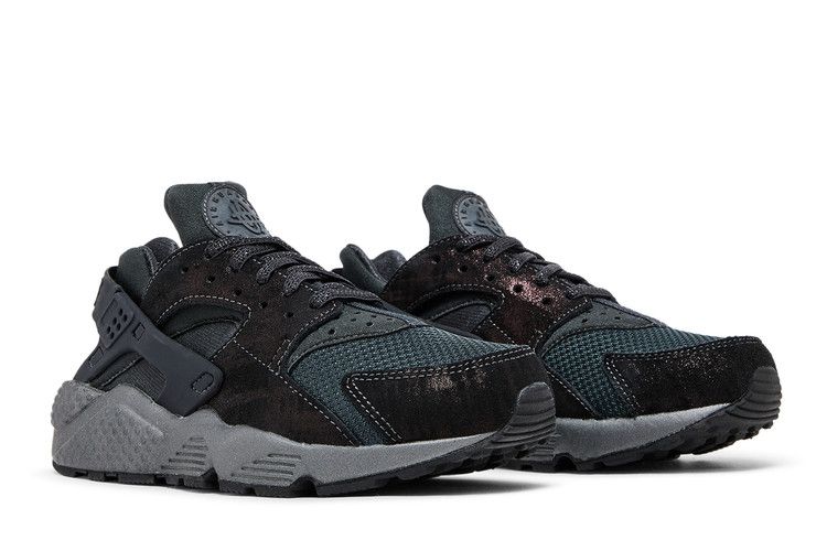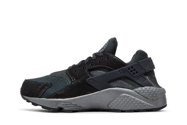 The Nike Air Huarache Black Anthracite Heel Tab (Women's) marks the 30th anniversary of the original Huarache, inspired by water-skiing booties. The upper combines black synthetic neoprene-like material with leather overlays, forming a lace cage. It features a low-cut design, foam midsole, and rubber outsole for traction. The tongue includes the Huarache emblem as a heritage detail. Released on June 25, 2021, the Nike Air Huarache Black Anthracite Heel Tab (Women's) is available now at Side Kicks.