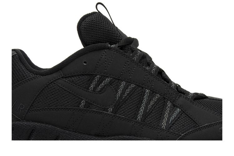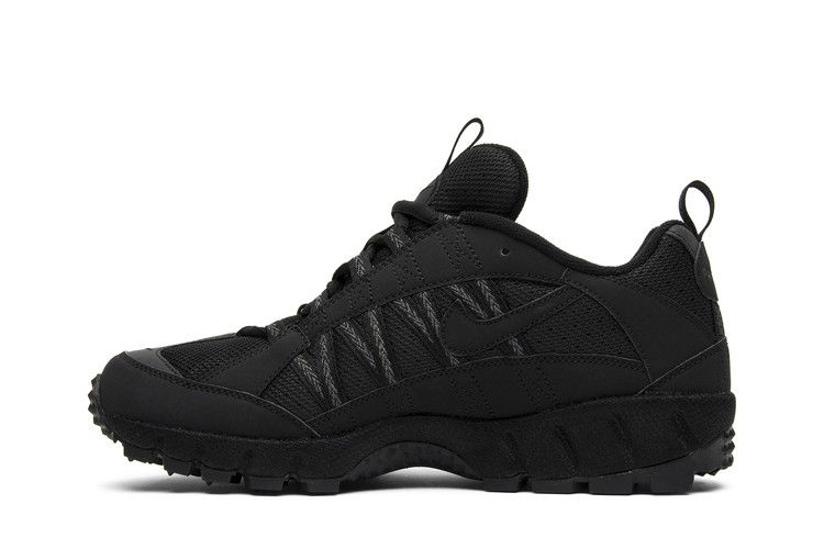 The Nike Air Humara 17 Supreme Black features a black mesh and synthetic upper with silver and red accents. It includes a rugged outsole for traction and Nike Air cushioning...