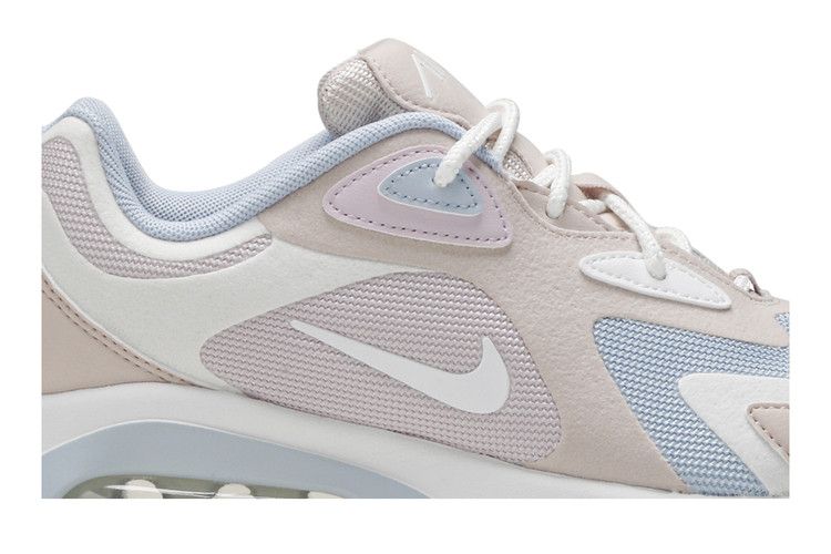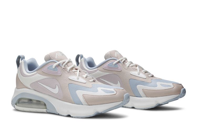 The Nike Air Max 200 Barely Rose (Women's) features a synthetic mesh upper with leather overlays in a Barely Rose/Fossil Stone/Light Armory Blue/Summit White colorway. It includes white Swooshes, a...