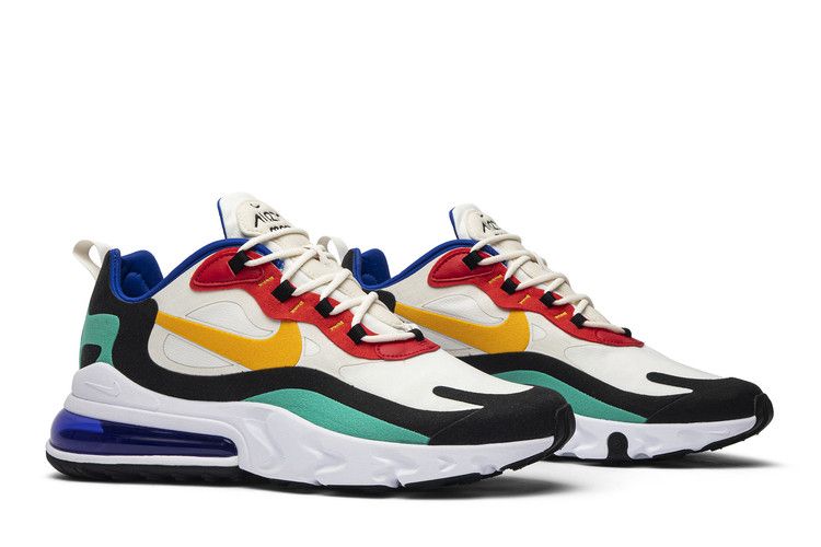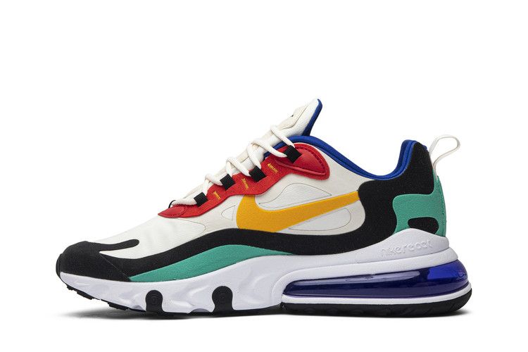 The Nike Air Max 270 React "Bauhaus" combines Air Max and React cushioning technologies for comfort and support. The white upper features primary color overlays, inspired by the geometric shapes...