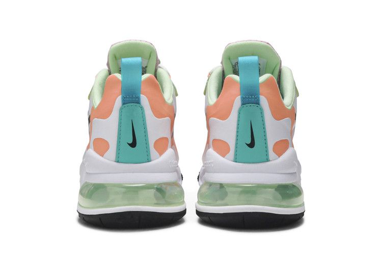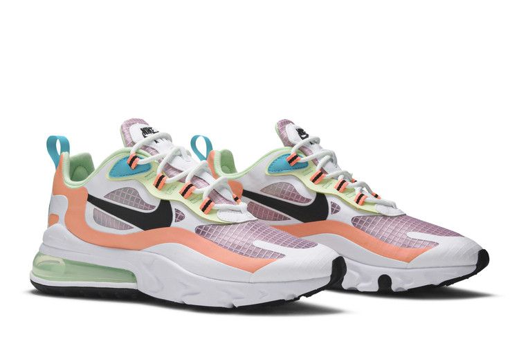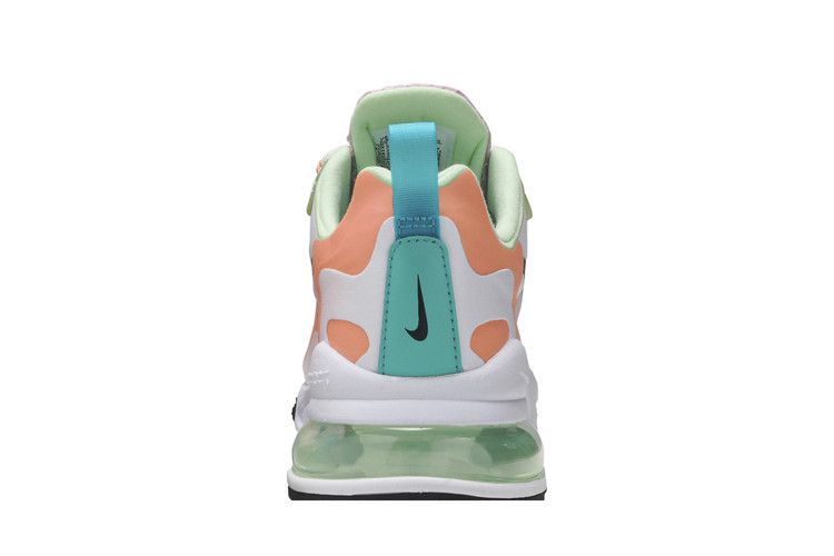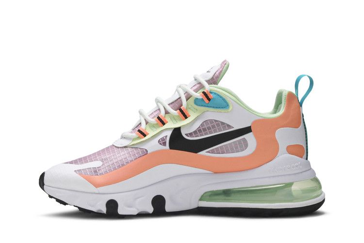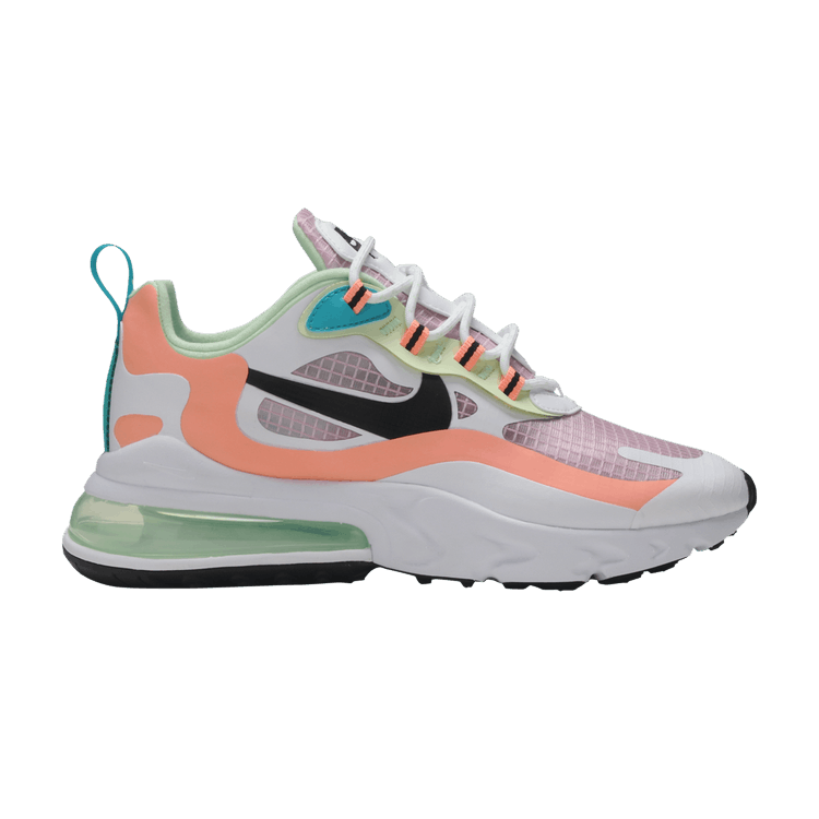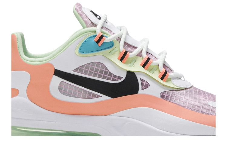 The Nike Air Max 270 React SE Light Arctic Pink W features a mesh and synthetic upper in a light Arctic pink colorway with pink, white, orange, and black accents....