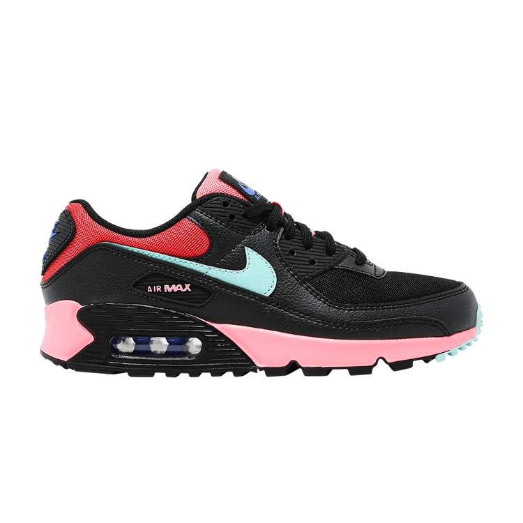 The Nike Air Max 90 Cuban Link Obsidian Pink for Women features a multicolored design with glossy patent leather Swooshes and toe overlays. A golden Cuban Link chain runs from...