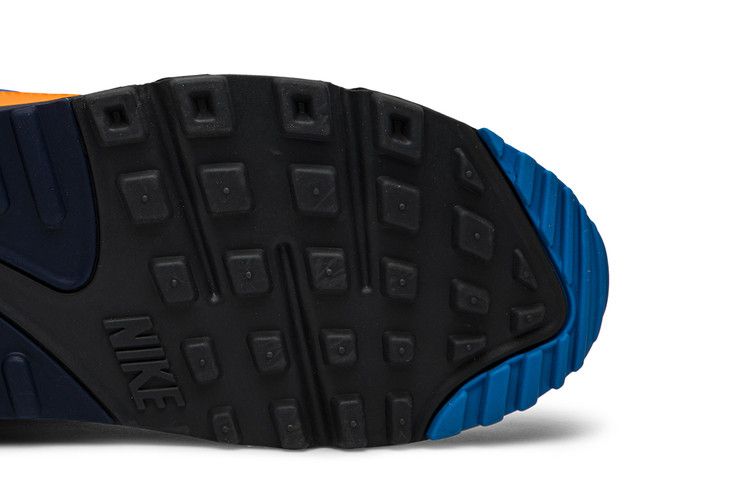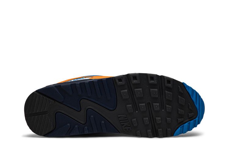 The Nike Air Max 90 White Photo Blue Total Orange features a white, photo blue, total orange, midnight navy, and dark grey colorway. Its upper combines durable leather with a...