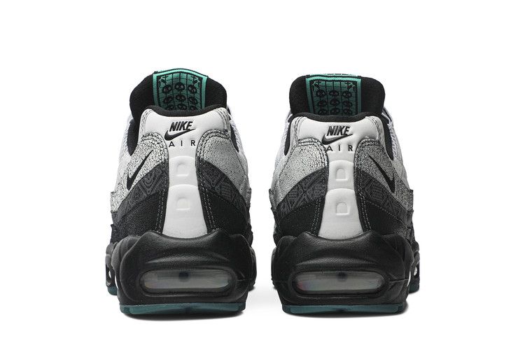 The Nike Air Max 95 Day of the Dead (2019) honors Dia de los Muertos with a sugar skull pattern inspired by traditional Mexican candies and decorations. It features a gradient fabric design transitioning from black at the sole to white at the laces, accented by dark teal. Additional details include diamond and splatter patterns, along with textured leather at the toe. Released on October 2019, the Nike Air Max 95 Day of the Dead (2019) is available now at Side Kicks.