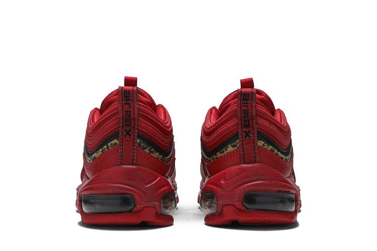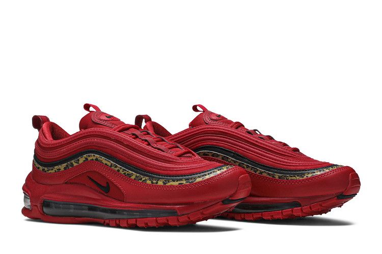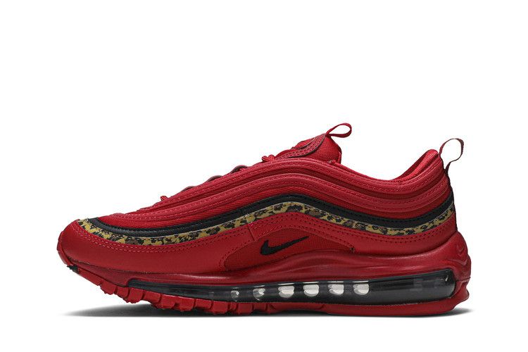 The Nike Air Max 97 Leopard Pack Red (W) features a rubber sole and leather upper in University Red and Print Black colorways. It includes an Air Unit in the...