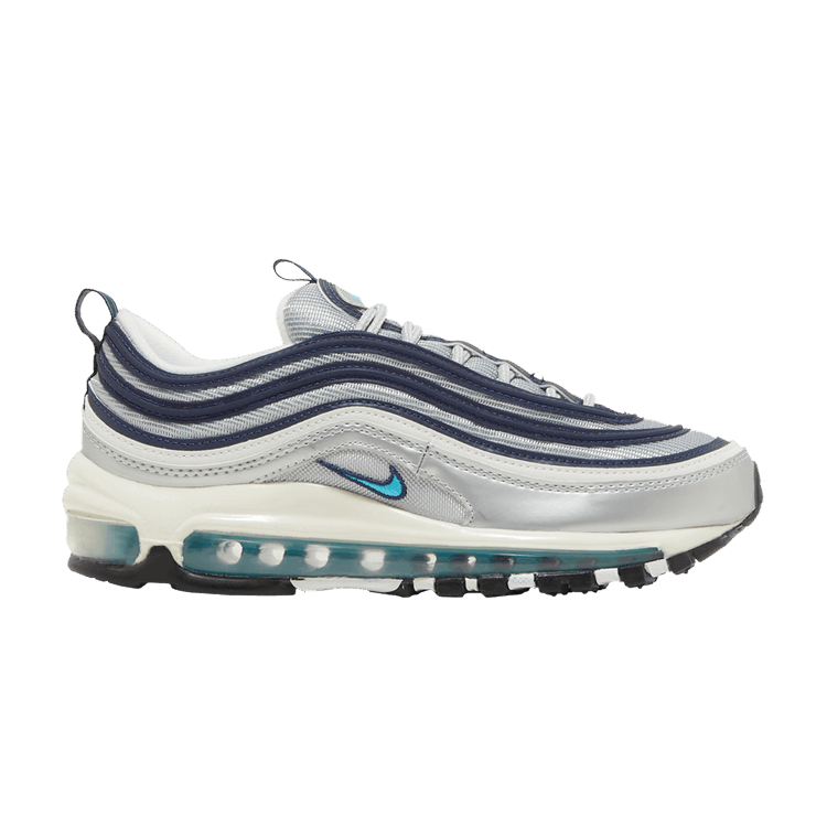 The Nike Air Max 97 Metallic Silver Chlorine Blue (Women's) is now available at Side Kicks!