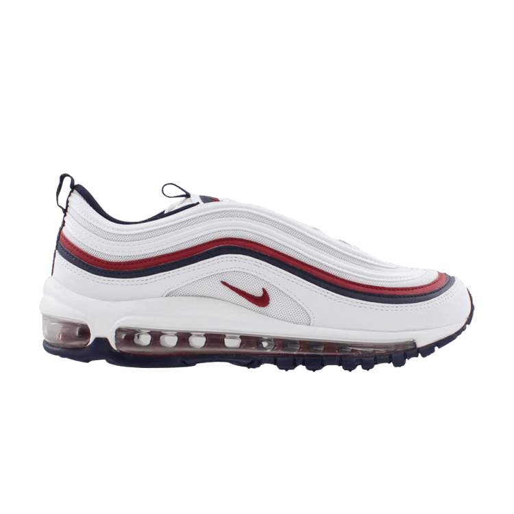 The Nike Air Max 97 Red Crush W features a vibrant red upper made from a mix of leather and synthetic materials. It includes the signature Air Max cushioning system for support and comfort, paired with a durable rubber sole. Released on June 20, 2018, the Nike Air Max 97 Red Crush W is available now at Side Kicks.