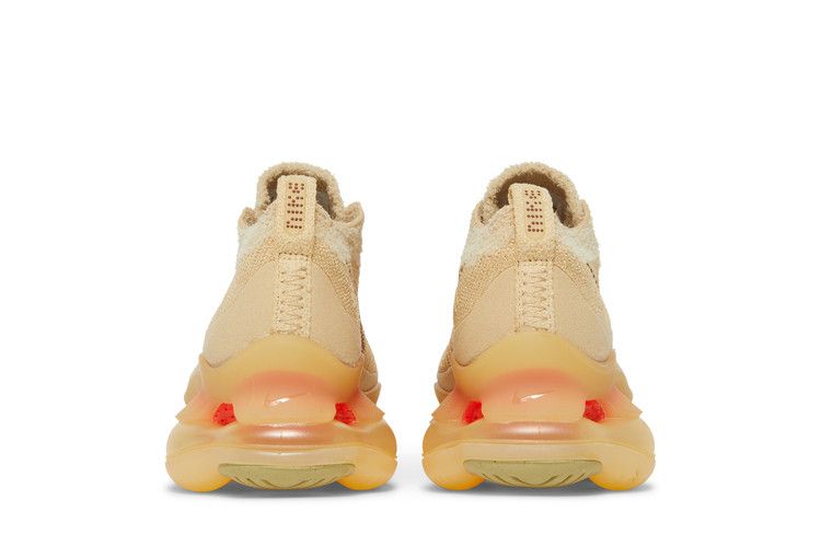 The Nike Air Max Scorpion FK Sesame (Women's) features a woven Flyknit upper with varied weave patterns, finished in light tan Sesame with lighter edges. Black Nike Swooshes adorn each...