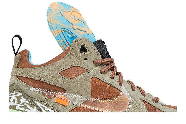 The Nike Air Terra Forma Off-White Archaeo Brown features a high-top upper blending hiking boot and basketball shoe elements. It includes a rugged black outsole with angled spikes and a...