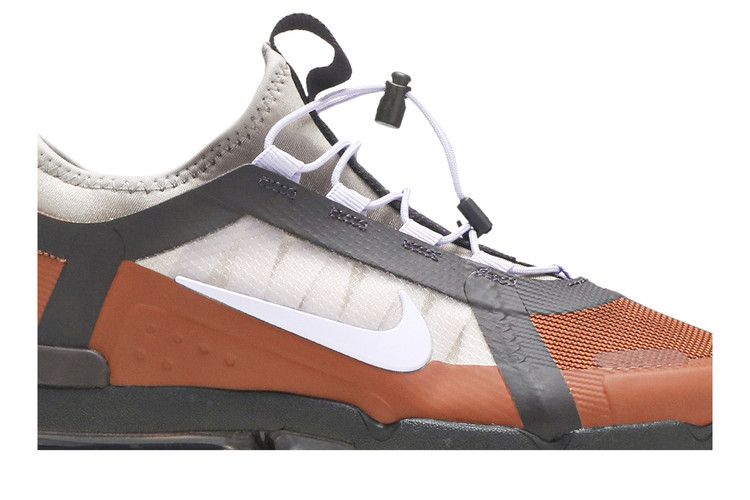 The Nike Air VaporMax 2019 Utility Cinnamon (Women's) features a cinnamon-colored mesh upper for breathability, paired with a silvery white neoprene bootie for a snug fit. White webbing on the...