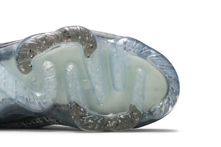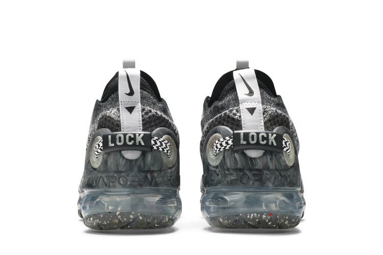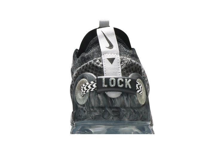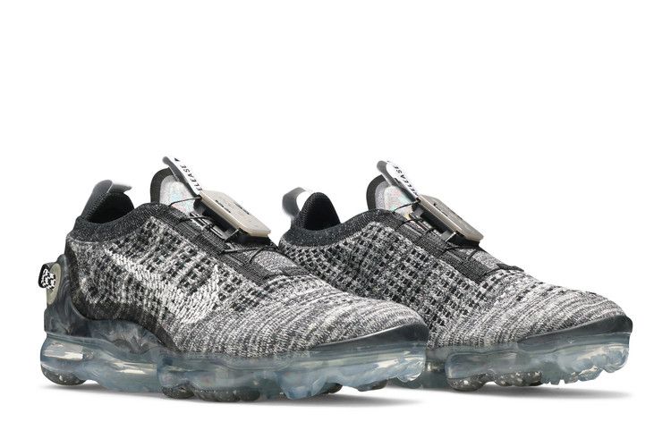 The Nike Air VaporMax 2020 Flyknit Oreo W features a Flyknit upper made from recycled polyester, blending gray, white, and black fibers. A TPU counter in neutral tones provides structure,...