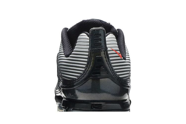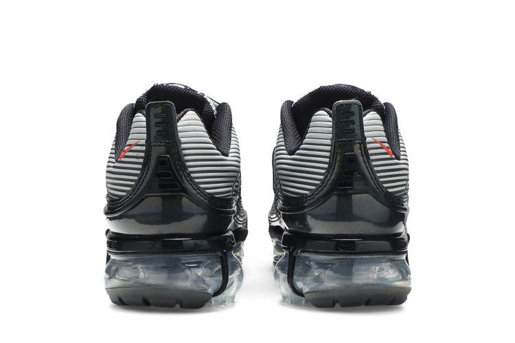 The Nike Air VaporMax 360 Metallic Silver (Women's) features a grey upper with black accents, a chrome Swoosh, and iridescent mudguards. Reflective details enhance visibility in low light. The clear...