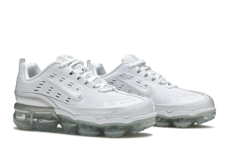 The Nike Air VaporMax 360 Triple White (Women's) features a white synthetic upper with breathable rectangular slots and tonal overlays for durability. A white TPU heel counter provides stability, while...