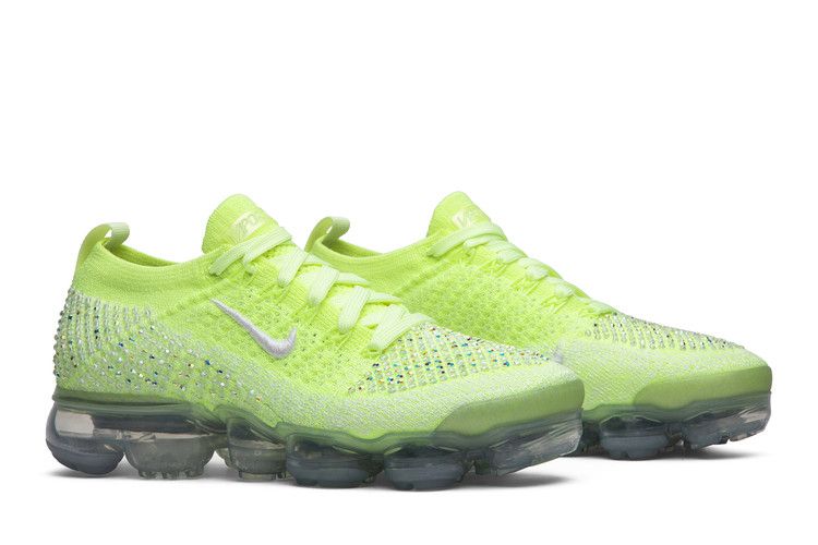 The Nike Air VaporMax FlyKnit 2 LXX Swarovski Volt (Women's) features a lime green FlyKnit upper with ribbed collar detailing for a secure fit. Translucent synthetic overlays provide structure, while...