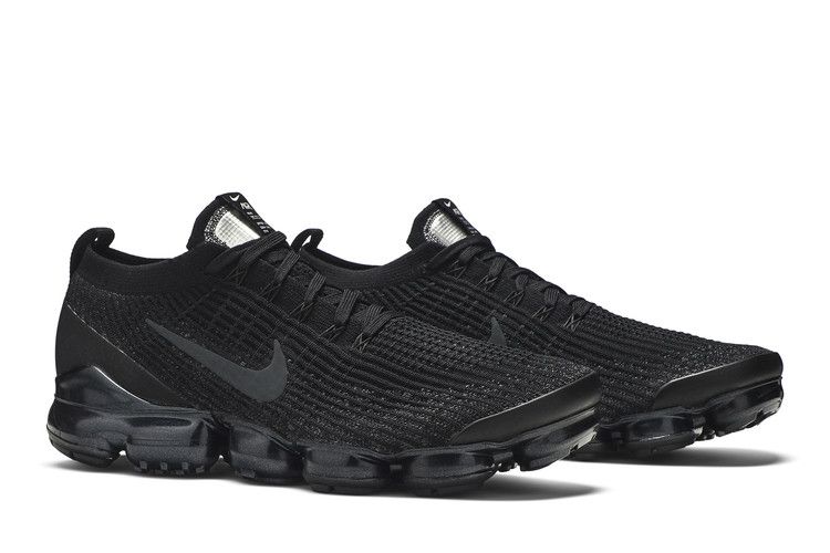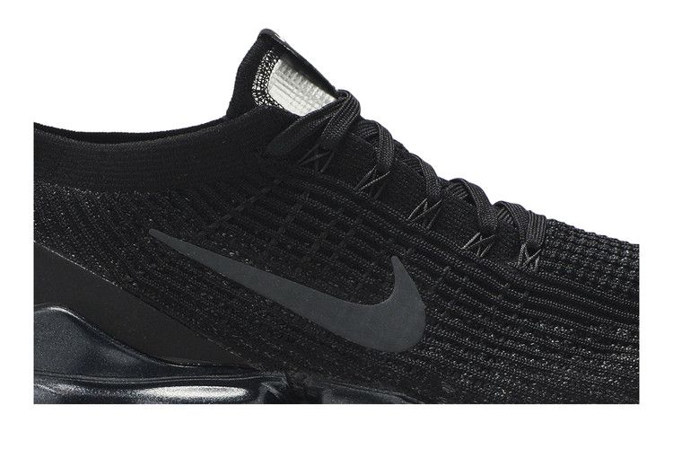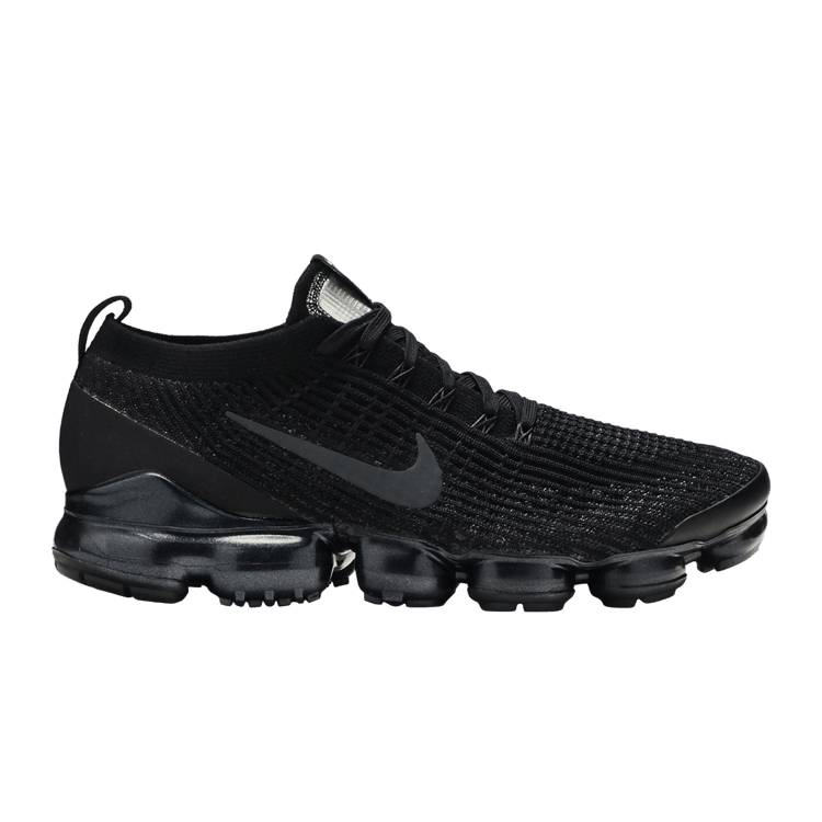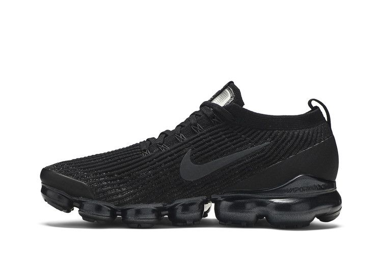 The Air VaporMax Flyknit 3 Triple Black introduced a direct Air unit attachment for a running-on-air sensation. The stretchable Flyknit upper enhances breathability, while VaporMax technology delivers lightweight cushioning and responsive bounce. Flywire cables provide support, and rubber pods reinforce high-wear areas. The design flexes with each stride for contoured comfort, featuring a space-inspired tongue label.