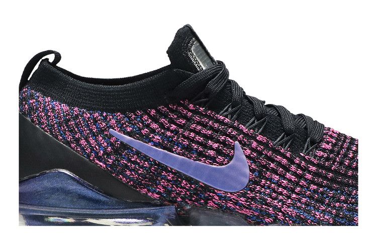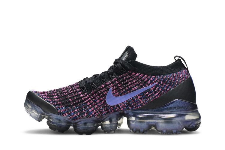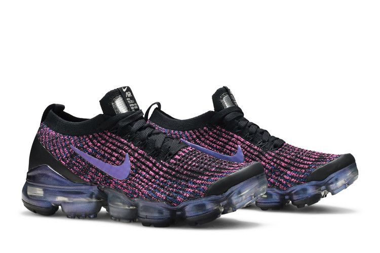 The Nike Air VaporMax FlyKnit 3 features a black Flyknit upper with dark purple overlays and a clear Air sole for traction. The dark purple Swoosh accents the side, while...