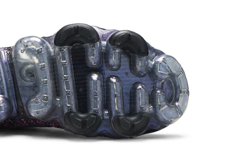 The Nike Air VaporMax FlyKnit 3 features a black Flyknit upper with dark purple overlays and a clear Air sole for traction. The dark purple Swoosh accents the side, while a black pull tab at the heel aids wearability. Its split sole design balances flexibility and support. Released on March 2019, the Nike Air VaporMax FlyKnit 3 is available now at Side Kicks.