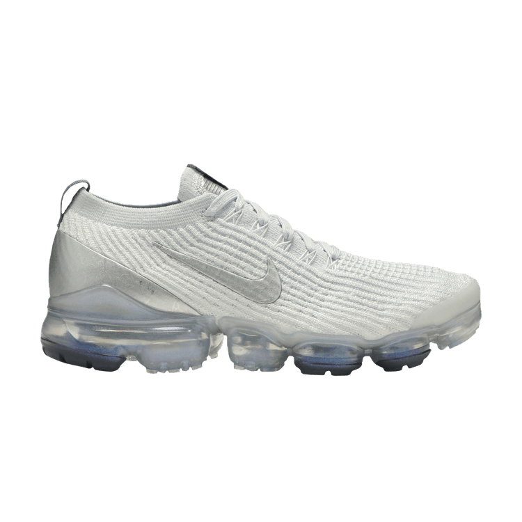 Released on May 20, 2019, the Nike VaporMax Flyknit 3 White Reflect Silver (Women's) is available now at Side Kicks.