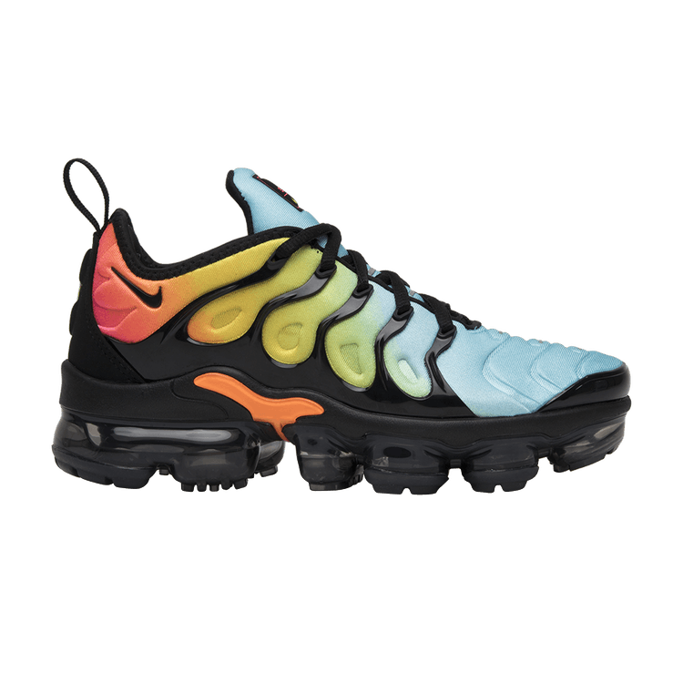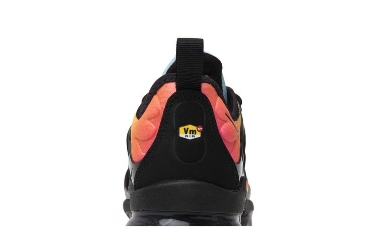 The Nike Air w VaporMax Plus Bleached Aqua (W) features a black upper with Bleached Aqua and Vivid Sulfur accents. The mesh and synthetic construction ensures breathability and durability, while the lace-up closure provides a secure fit. A padded collar and tongue add comfort and support.