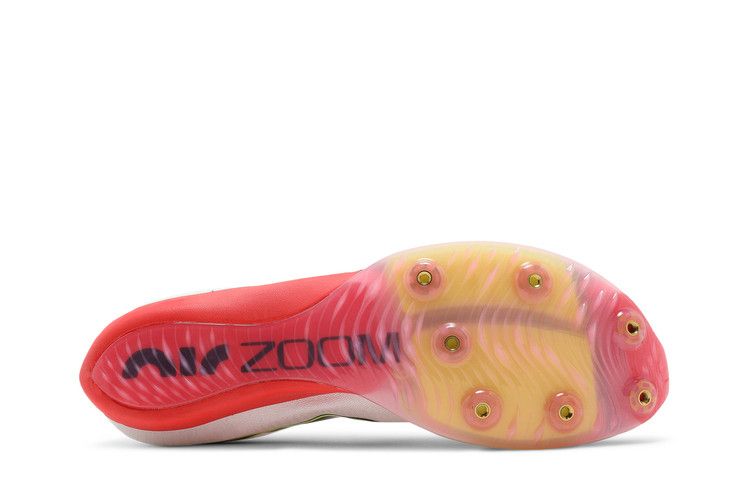 The Nike Air Zoom Maxfly Racing Spike White is designed for sprinting events, offering speed, support, and traction. The outsole features durable, strategically placed spikes for grip on the track....