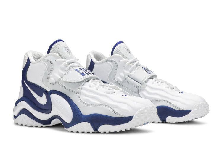 The Nike Air Zoom Turf Jet 97 Barry Sanders (2019) features a leather and mesh upper for breathability and flexibility, finished in white with royal blue accents. Nike Air Zoom...
