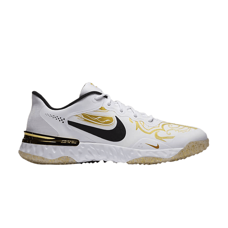 The Nike Alpha Huarache Elite 3 Turf Premium White Metallic Vivid Gold is now available at Side Kicks!
