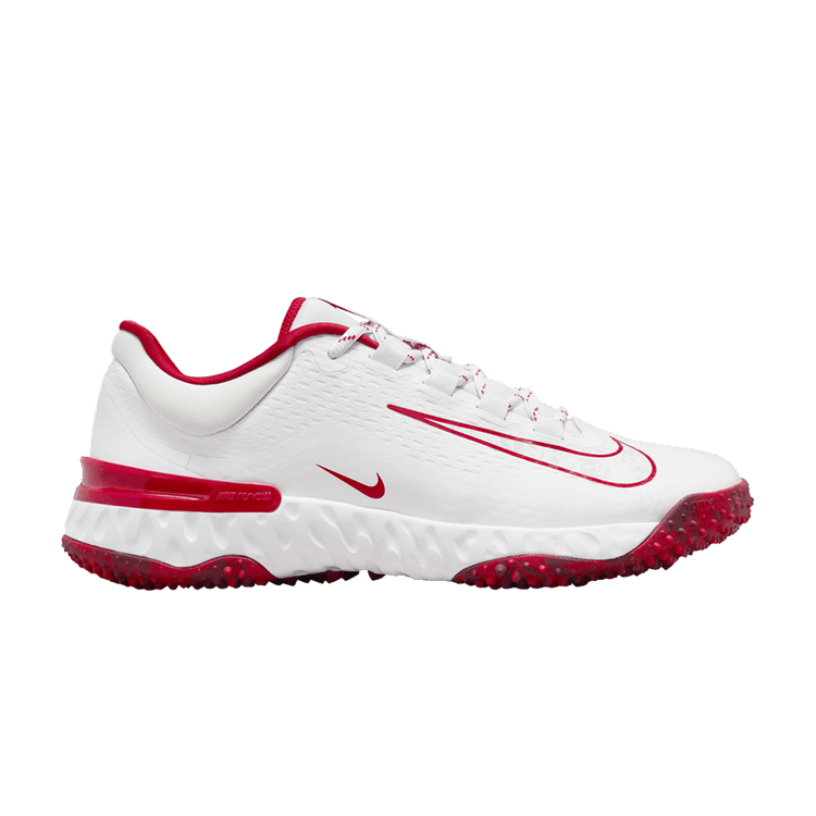 The Nike Alpha Huarache Elite 4 Turf White University Red Team Red Pure Platinum (Women's) is now available at Side Kicks!...