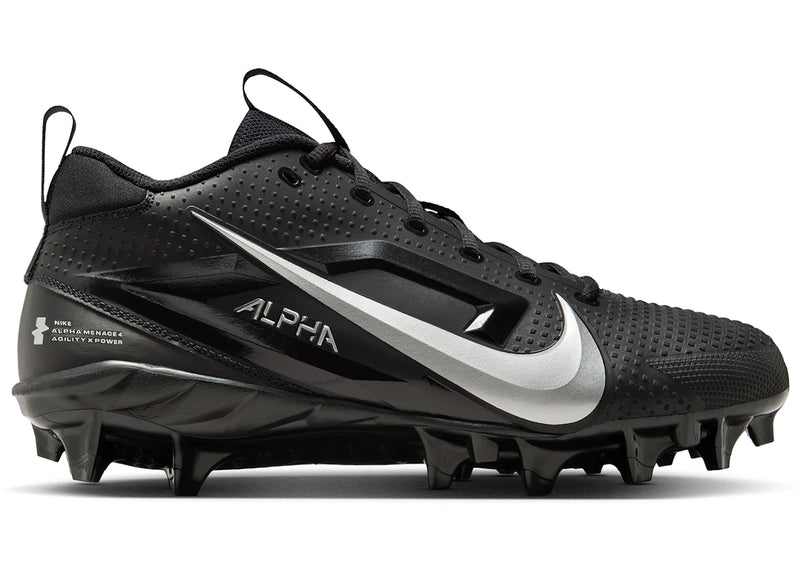 The Nike Alpha Menace 4 Varsity Black Metallic Silver is now available at Side Kicks!