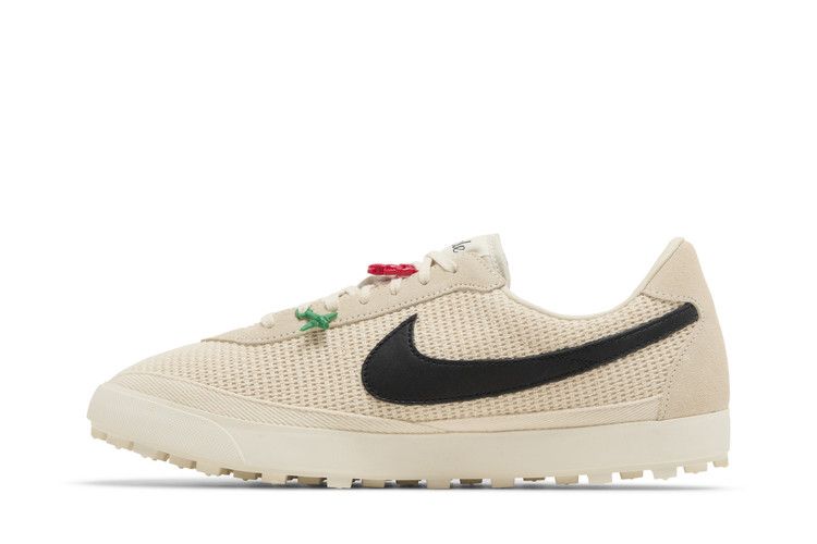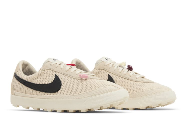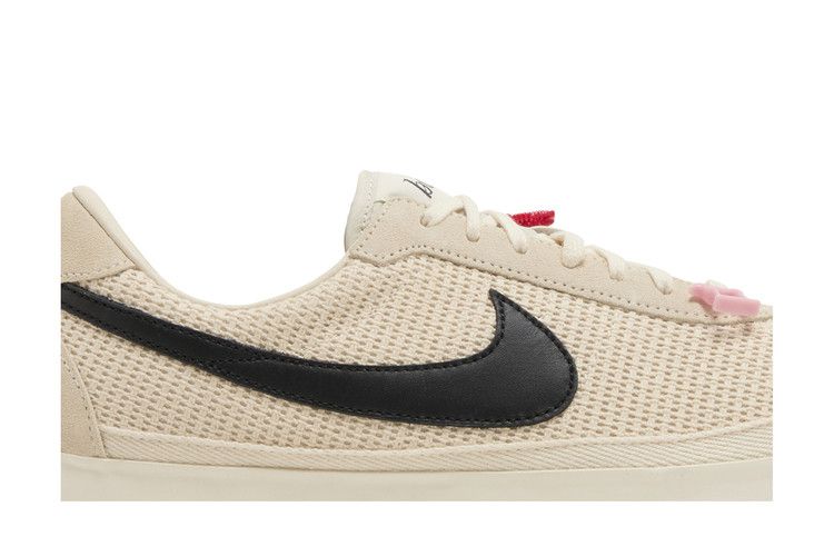 The Nike Astro Grabber SP Bode Natural features a retro-inspired design from 1970s Nike sneakers, crafted with mesh and suede uppers in Light Cream or Natural tones. Black Swoosh logos appear on the side panels, while the woven tongue tag displays 'BODE' in a curving font. Plastic charms in red, pink, and green hang from cotton laces, and a rubber waffle outsole completes the look. Released on May 5, 2024, the Nike Astro Grabber SP Bode Natural is available now at Side Kicks.