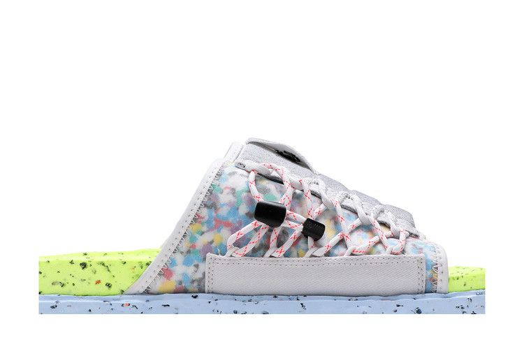 The Nike Asuna Crater Slide Platinum Lint Volt Chambray Blue Black is now available at Side Kicks!