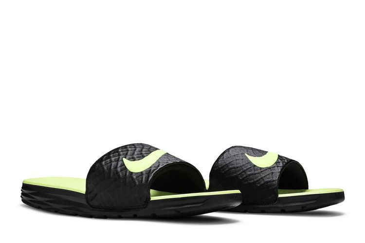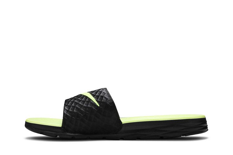 The Nike Benassi Solarsoft Black/Volt is now available at Side Kicks!