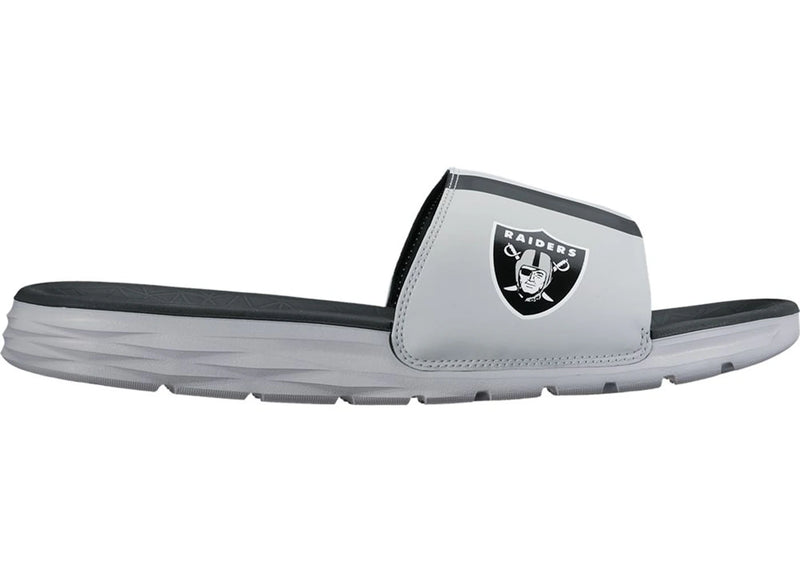 The Nike Benassi Solarsoft Slide Oakland Raiders is now available at Side Kicks!